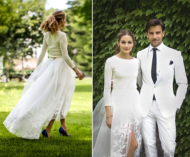 名媛Olivia Palermo甚至穿着羊绒衫,扎着马尾完成了自己的草地婚礼,作为时尚Icon,她将马尾辫带入了婚礼殿堂。